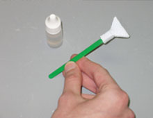 Apply cleaning liquid evenly across edge, taking precaution not to oversaturate the swab.