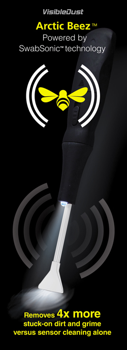 Arctic Beez™ is a pulsating device (patent pending) with frequency of 13000 rpm and a unique buzzing sound similar to that of bees. This vibration frequency is carried to the swab which is placed inside the device cavity. The Swabsonic™ Technology is powered by DC engine and smart electronic circuitry that generates soft sonic vibration to loosen dirt and stain on the coated sensor. It works 4X more efficiently than when the swab is used alone. One major cost associated with regular sensor cleaning is the number of swabs used per cleaning session in order to remove the stubborn stain. Arctic Beez™ helps to reduce the number of swabs used in sticky dirt situation leading to essential cost saving. This saving can accumulate over the years and seems to be significant enough to pay for a newer camera body.